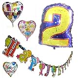 ハッピー ☆ バースディ お誕生日 パーティ 飾りつけ セット 特大バルーン 数字風船 1個 & ハート型 バルーン 風船 3種 & HAPPY BIRTHDAY バナー 【数字 ☆ 歳記念日風船】 (数字の【 2 】)
